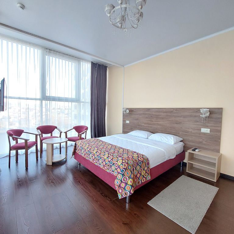 Все номера отеля оборудованы кондиционером, телевизором с плоским экраном и микроволновой печью. К услугам гостей собственная ванная комната с душем. В числе удобств холодильник и чайник в номере. Заезд: c 14:00 Отъезд: до 12:00 Завтрак предоставляется за дополнительную оплату, сет-меню 500 рублей. Отмена/предоплата: правила отмены бронирования и предоплаты зависят от категории номера. Пожалуйста, введите даты проживания и ознакомьтесь с условиями бронирования для требуемого номера. Размещение детей и предоставление дополнительных кроватей: разрешается проживание детей любого возраста. Бесплатно! При размещении одного ребёнка младше 6 лет на имеющихся кроватях проживание ему предоставляется бесплатно. При размещении всех детей младше 16 лет на дополнительных кроватях взимается rub 800 за ночь. При дополнительном размещении всех детей старшего возраста или взрослых на дополнительных кроватях взимается rub 800 за ночь. Разное: места для курения, кондиционер, семейные номера, номера