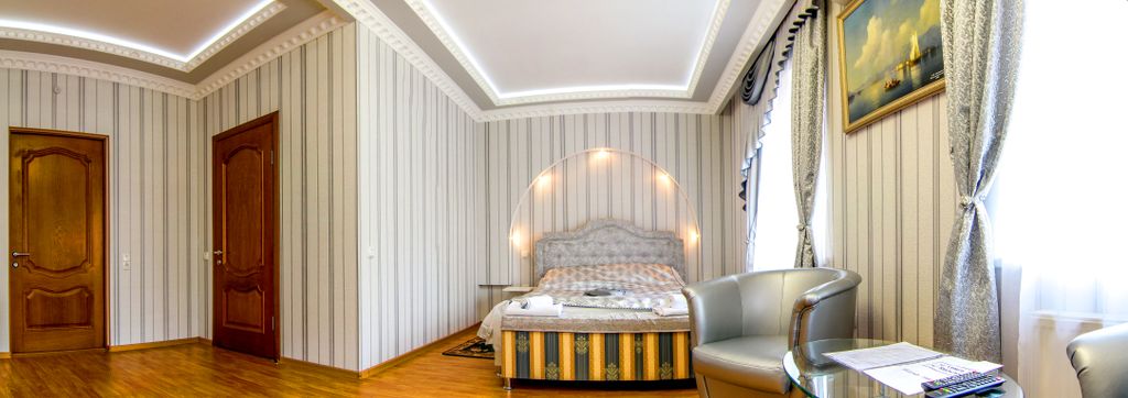 Отель (классификация 3 звезды) расположен в городе симферополе, в 10 минутах ходьбы от центрального железнодорожного вокзала и в 10 - 15 минутах езды от центра города. Отель находится в 14 км. От международного аэропорта "симферополь". К услугам гостей 10 комфортабельных номеров различных категорий с бесплатным wi - fi. Номера с кондиционерами, оформлены в классическом стиле и оснащены двухспальными кроватями с ортопедическими матрасами, холодильником и телевизором с плоским экраном и кабельными каналами. Собственные ванные комнаты с душем укомплектованы феном и бесплатными туалетно - косметическими принадлежностями. Отель предлагает содействие в организации и провидении конференций, деловых встреч и тренингов любого формата, с учетом всех ваших пожеланий. Конференц - зал вместимостью до 50 человек и оснащен современным мультимедийным оборудованием: Мультимедиа проектор Экран Dvd Флипчарт Зона wi-fi Режим работы: круглосуточно. Время заезда: 14: 00 Время выезда: 12: 00