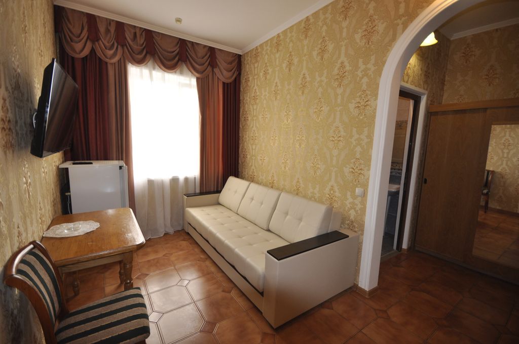 Отель расположен в тихом месте, окруженном раскидистыми соснами. В нескольких кварталах находится автовокзал, расстояние до моря можно преодолеть за 10 минут пешком. Очень удобное расположения отеля для тех, кто едет на своем транспорте, так как при отеле имеется закрытый бесплатный паркинг. На первом этаже расположен ресторан китайской кухни. В каждом номере есть все для комфортного проживания, а именно: кондиционер, холодильник, ТВ, большая двухспальная кровать, ванна.