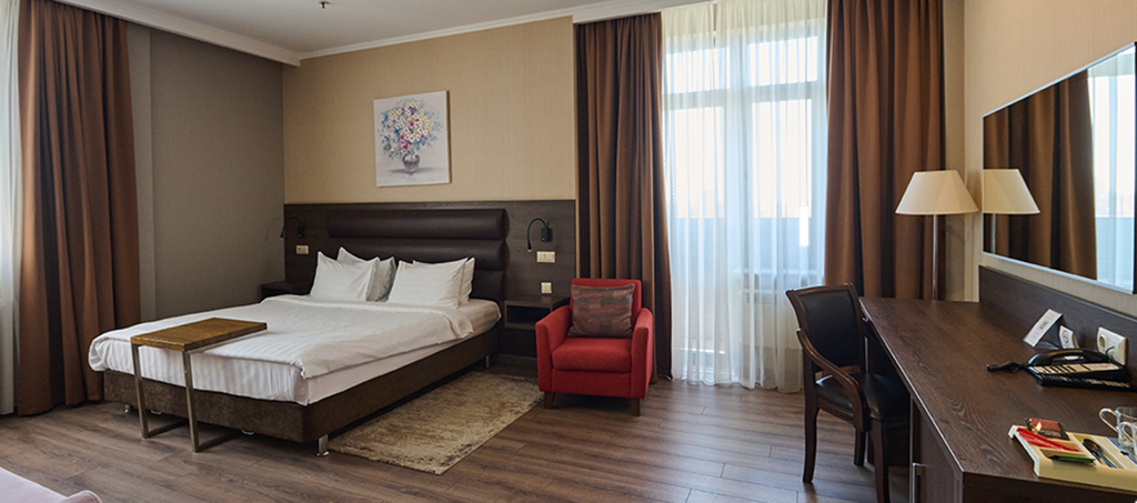 Ramada by Wyndham Rostov on Don Hotel and SPA — 4* гостиница мирового уровня, представленная крупнейшей в мире гостиничной сетью Wyndham Group. Доводим до Вашего сведения, что с 01.01.2025 г. в г. Ростове-на-Дону введен туристический налог. Просим учесть, что туристический налог оплачивается дополнительно при заселении за каждые сутки проживания. Поблизости с отелем располагаются респектабельные бизнес-центры, дворец спорта, ледовый каток, цирк, главный ж/д и автовокзал, торговый центр «Астор» и ЦУМ, а также большое количество магазинов, банков, салонов красоты, ресторанов и кафе. Для постояльцев гостиницы Ramada by Wyndham Rostov-on-Don Hotel & SPA в проживание включено посещение SPA с 9:00 до 21:00 (большое джакузи (соответствующее нормам и требованиям СанПин), турецкий хаммам, финская сауна, солевая комната и лаунж-зона), тренажерный зал (работает круглосуточно), организована бесплатная охраняемая автостоянка. Одной из приоритетных задач отеля является безопасность проживан