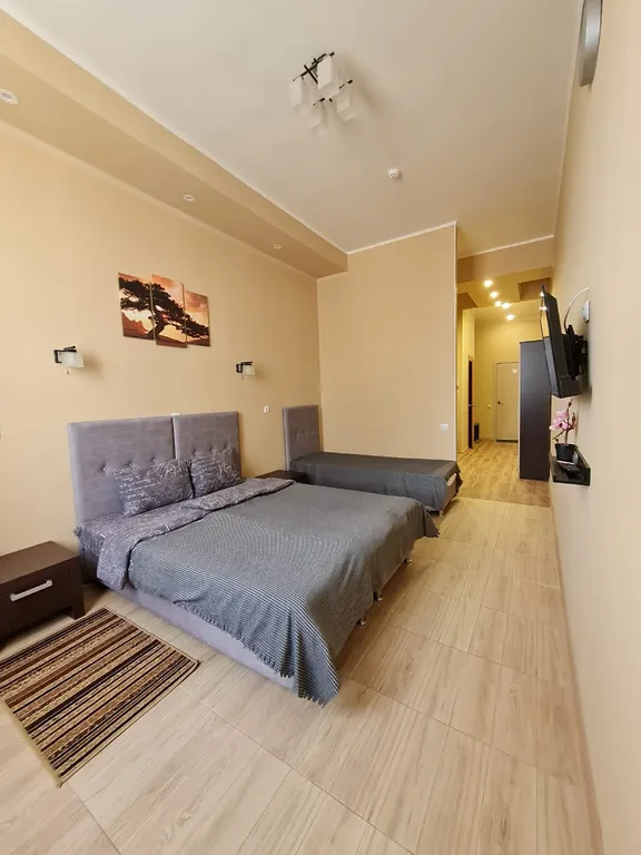 Один ребёнок до 3 лет — можно без отдельного спального места. Можно с домашними животными только по согласованию с отелем! Залог за животного - 5000 рублей, доплата 1000 рублей/сутки за питомца. Здесь созданы все условия для комфортного проживания — есть холодильник, телевизор, фен, утюг, чай/кофе в номерах, посуда, чайник, микроволновая печь.