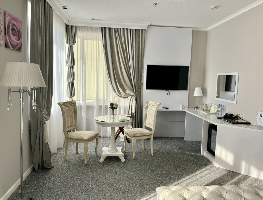Отель расположен вдоль реки Кубань. Совсем рядом заветное место всех влюблённых – Мост Поцелуев, наполненное магией счастья и любви. От отеля с легкостью можно добираться в деловую часть Краснодара, на вокзал или выезжать за пределы Кубанской столицы, что, без сомнения, подойдёт бизнесменам, деловым людям и гостям нашего города. Мы предлагаем дорогим гостям комфортные номера со всеми удобствами. Интерьер выполнен в классическом стиле, в спокойных тонах, которые помогают расслабиться и отдохнуть в полной мере. С балконов номеров открывается изумительный вид на реку Кубань или Свято-Троицкий собор. Гостям отеля предоставляется скидка в размере 10% при посещении ресторана. Возможно размещение с домашними животными (дополнительно оплачивается депозит в размере 2000 рублей, который возвращается при выезде гостей при условии отсутствия повреждений в номере).