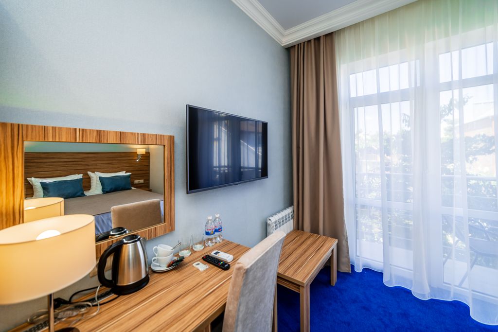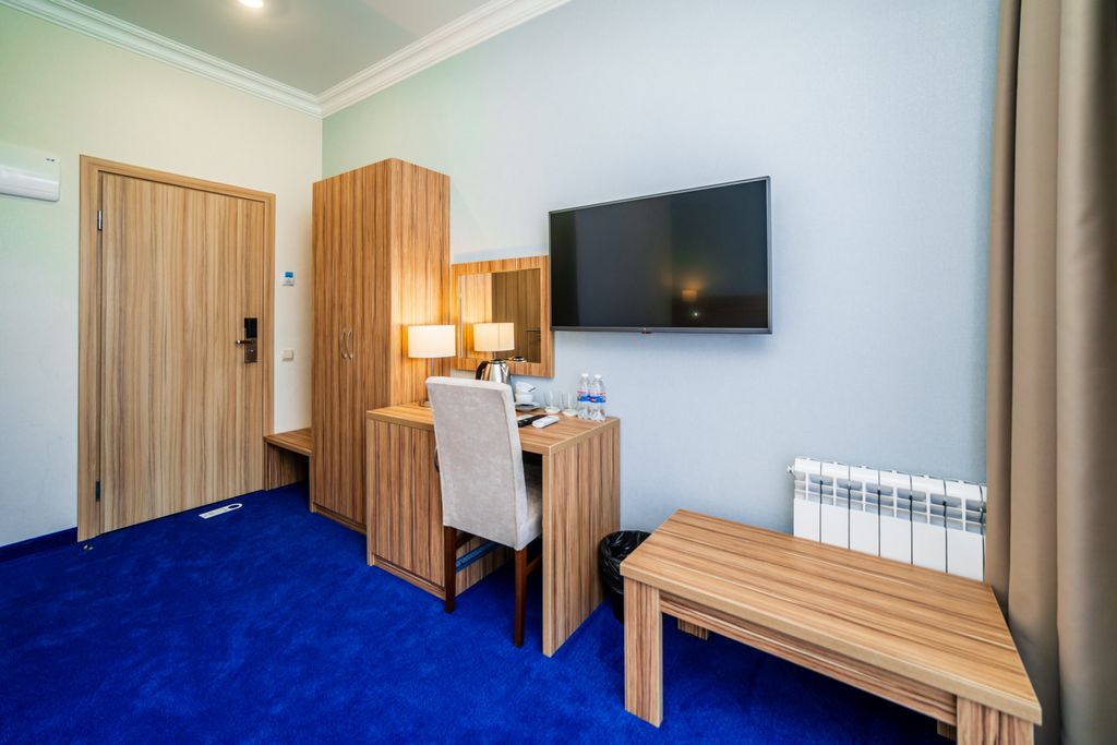 Приглашаем гостей города-курорта Геленджик насладиться отдыхом в трехзвездочном отеле Blue Marlin. Мы находимся в центральной части города — рядом развлекательные заведения, торговые центры, остановки общественного транспорта. Чистый песчаный пляж Черного моря всего в 5 минутах ходьбы. В отеле 36 комфортабельных номеров с кондиционером, телевизором и мини-холодильником: стандартные или улучшенные двухместные; семейные однокомнатные; двухкомнатные семейные. В номерах своя ванная комната с феном, полотенцами и набором индивидуальных средств для личной гигиены. Работает бесплатный Wi-Fi, чтобы вы всегда имели доступ в интернет. На территории расположен бассейн с подогревом. Оборудована отдельная зона для детей с чашей мелкой глубины. На цокольном этаже открыто кафе с питанием по системе «шведский стол». Наши повара готовят сытные блюда европейской и местной кухни. Регулярно обновляем меню. Завтраки включены в цену проживания. Если нужно, закажем для вас такси для поездок по городу, рас