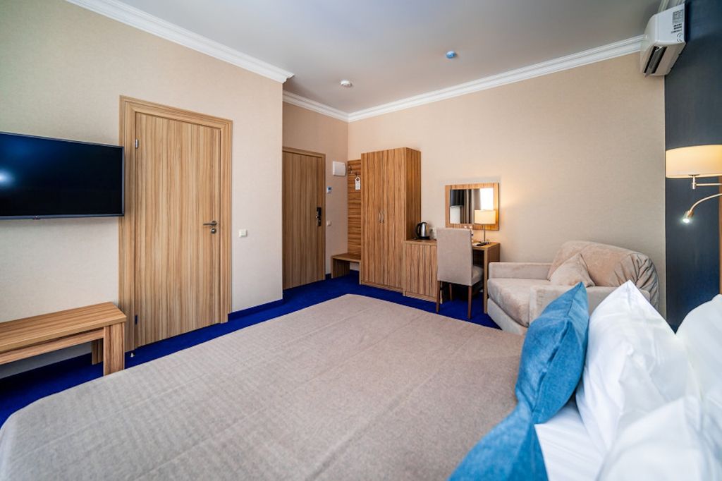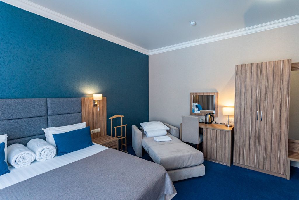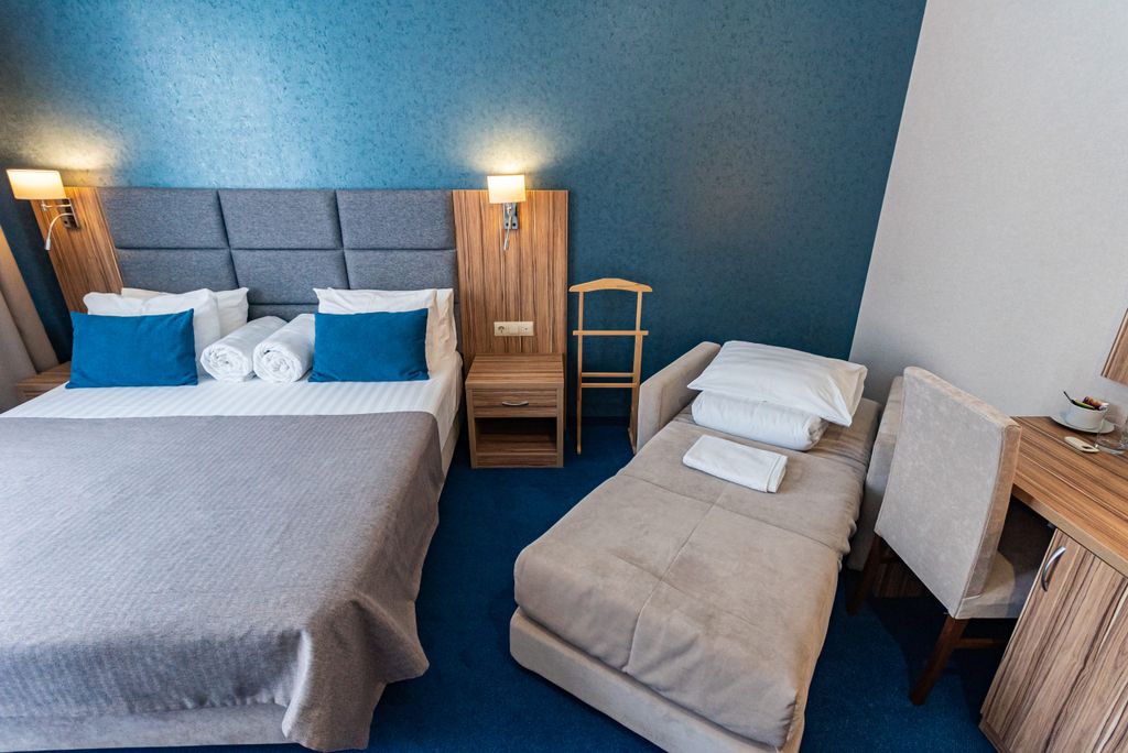 Приглашаем гостей города-курорта Геленджик насладиться отдыхом в трехзвездочном отеле Blue Marlin. Мы находимся в центральной части города — рядом развлекательные заведения, торговые центры, остановки общественного транспорта. Чистый песчаный пляж Черного моря всего в 5 минутах ходьбы. В отеле 36 комфортабельных номеров с кондиционером, телевизором и мини-холодильником: стандартные или улучшенные двухместные; семейные однокомнатные; двухкомнатные семейные. В номерах своя ванная комната с феном, полотенцами и набором индивидуальных средств для личной гигиены. Работает бесплатный Wi-Fi, чтобы вы всегда имели доступ в интернет. На территории расположен бассейн с подогревом. Оборудована отдельная зона для детей с чашей мелкой глубины. На цокольном этаже открыто кафе с питанием по системе «шведский стол». Наши повара готовят сытные блюда европейской и местной кухни. Регулярно обновляем меню. Завтраки включены в цену проживания. Если нужно, закажем для вас такси для поездок по городу, рас