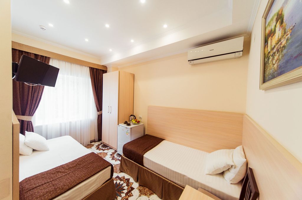 Отель расположен в Киевском районе, в 800 метрах от площади Куйбышева, которая является транспортной развязкой г. Симферополя. Удобное расположение, высокое качество сервиса и доступные цены делают отель наиболее подходящим как для деловых поездок, так и для отдыха. К Вашим услугам 7 комфортабельных номеров. В мини-отеле вы найдёте всё, что необходимо от удобного расположения до уютной обстановки по уютной же цене. Это недорогая частная гостиница в Симферополе, расположенная в 800 метрах от Куйбышевской площади (транспортной развязки города). Отель - самый чистый в городе. Здесь гостям предоставляется белоснежное постельное бельё. Семь номеров обслуживаются круглосуточно. Наш отель - один из лучших мини-отелей Симферополя, сочетающий в себе уединённый домашний уют и европейский сервис. В число предоставляемых услуг входит: Возможность заказа блюд и напитков в номер. Wifi-доступ в интернет. Другие услуги. Кафе с отличным меню на первом этаже.