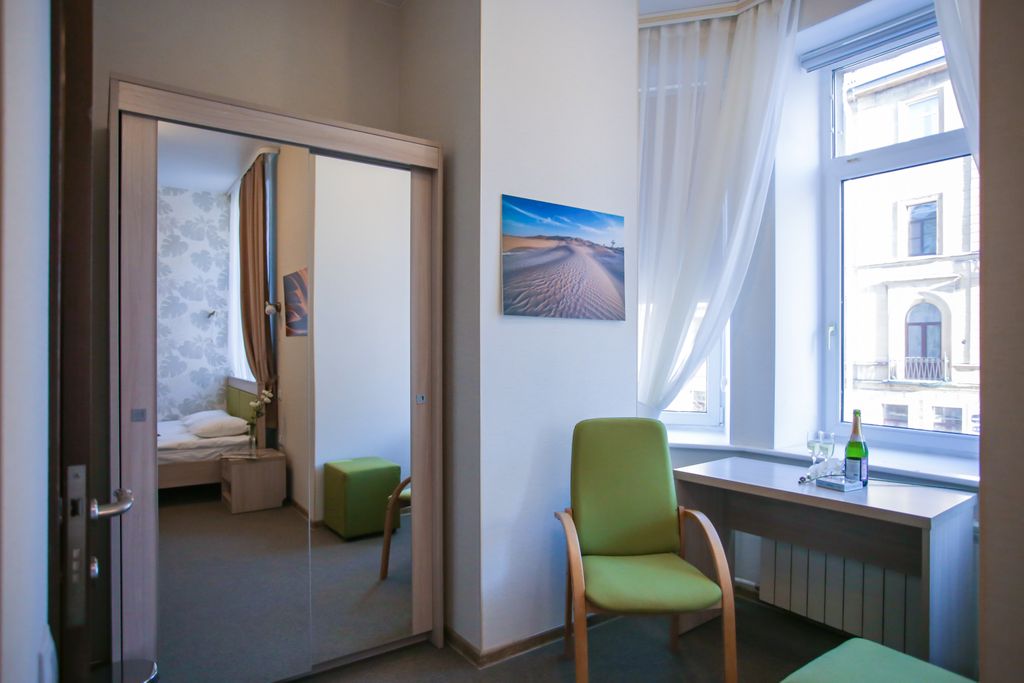Небольшой и уютный отель в самом центре Петербурга, в 5 минутах ходьбы от главной магистрали города — Невского проспекта. Оформленный в светлых тонах отель располагает 13 номерами, полностью оснащенными в соответствии со стандартами. Открытый в конце 2019 года, отель прошел официальную классификацию 3*. В отеле также имеется уютная кухонная зона, где проходит завтрак, а также гости могут выпить чай или кофе в любое время.