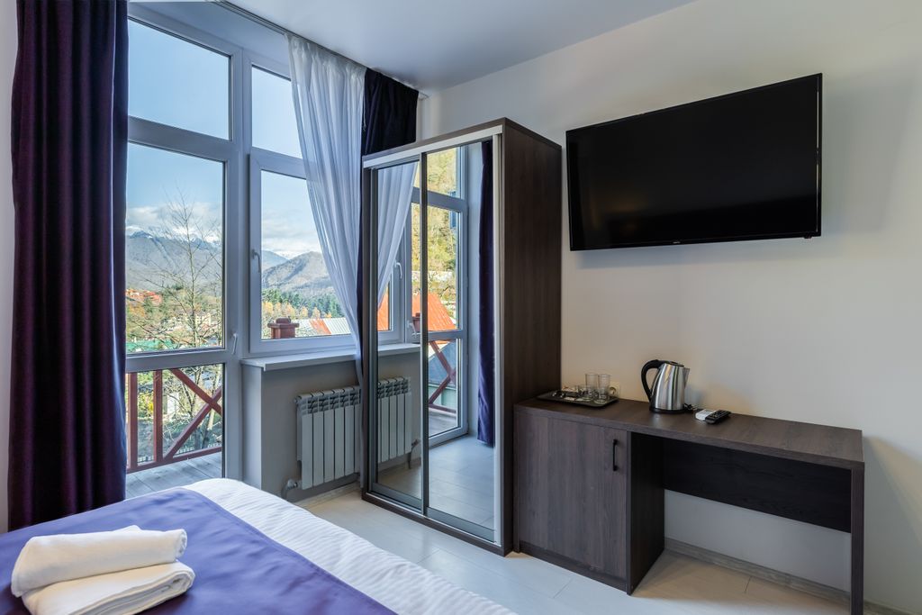 Если Вы любите горы и природу в сочетании с комфортом, то добро пожаловать в Гостевой Дом "Атмосфера" на Красной Поляне. Это место - магнит, притягивающий самых интересных, уникальных и душевных людей. Наш Гостевой Дом - наполненное солнцем и воздухом пространство с непередаваемой Атмосферой, где каждый найдёт для себя занятие по душе. Мы поможем вам найти то самое, а наши номера подарят вам комфорт и наслаждение. Мы находимся в центре Красной Поляны, откуда открываются прекрасные виды на горы. Рядом с нами множество кафешек, ресторанов, бань и других видов развлечений. Основные горнолыжные курорты находятся в 5-10 минутах езды от нас. Ждем каждого!
