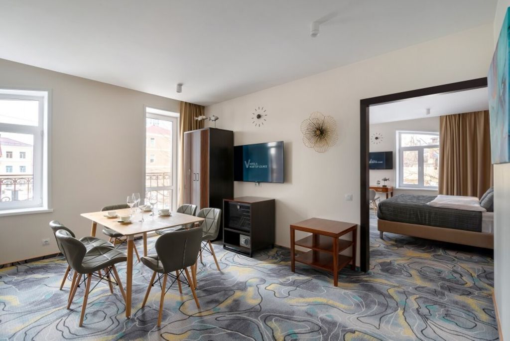 Отправляясь в столицу дфо, важно заранее определиться с местом, где будет комфортно жить или работать в это время. Представляем инновационный апарт-отель: «v hotel» Значительное преимущество «v hotel» в том, что он находится в центре города, где в шаговой доступности культурные достопримечательности города, набережная, арбат, краевая администрация, бизнес-центры, банки, все популярные рестораны, бары и кафе, фитнес клуб «world class» с бассейном. Отель класса «4 звезды» включает в себя 26 номеров и апартаментов и летний rooftop lounge бар на крыше. Каждый номер оборудован smart tv, автоматическими шторами black out, кофе машинами, мини-барами, кондиционерами. В ванных комнатах установлена система тёплый пол и душ биде. Апартаменты оборудованы собственными полностью оснащенными кухнями. В номере люкс – можно наслаждаться видом на центр города прямо из джакузи. Цветовая палитра отеля очень лаконична, используются только тёплые цвета. Для работы в более расслабленной обстановке на пе