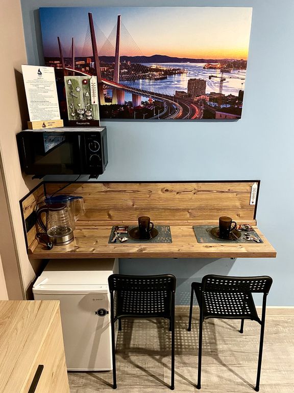 Новый мини-отель в живописном районе города — остановка «маяк», р-н эгершельд. Ухоженная придомовая территория, современный стадион с площадками для активных игр и фитнеса и панорамные виды на амурский залив. В пешей доступности корабельный причал fesco, сквер анны щетининой, супермаркет и аптеки. До знаменитого маяка токаревского с пляжем 1 км. До вокзала и центральной площади 2-3 км. К услугам гостей 9 уютных номеров разных категорий — от эконома с двуспальной кроватью до люкса с персональной кухней, лоджией и кинотеатром. В каждом есть всё необходимое для комфортного пребывания: Чайник; Холодильник; Кондиционер; Свч-печь; Телевизор; Ванная с комплектами белья и средствами гигиены. На всей территории работает бесплатный высокоскоростной wi-fi.