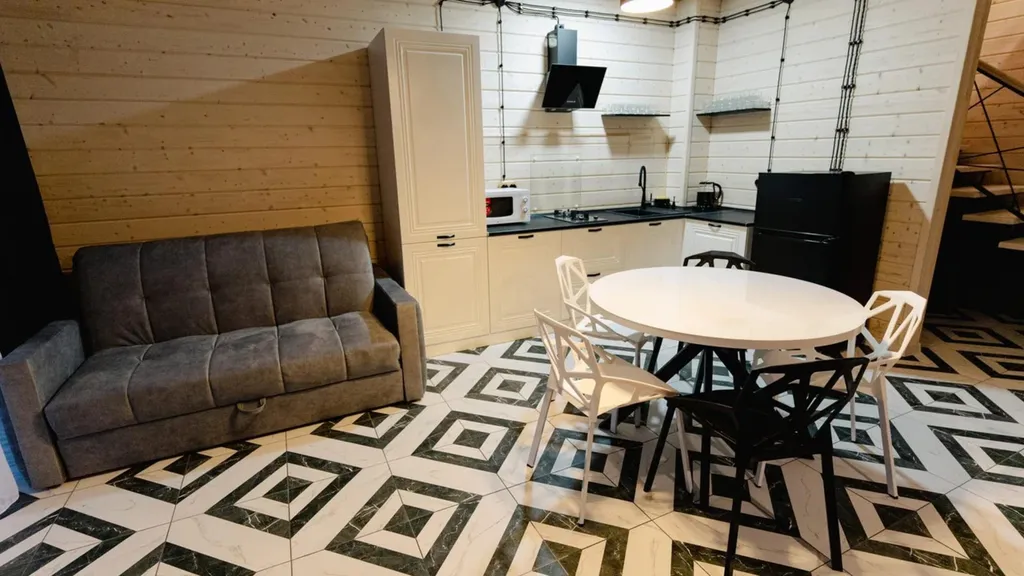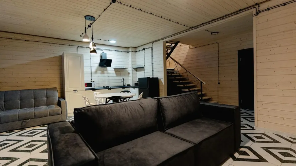 Двухэтажный дом в стиле Монохром. В Вашем распоряжении : 4 спальни и зал с кухней. В каждой комнате санузел и душ. Вместимость до 18 гостей. Своя мангальная зона Бассейн включён в стоимость проживания.