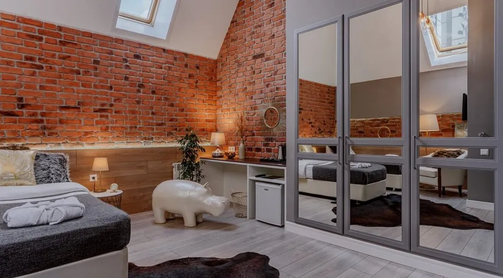 Роскошный, просторный и элегантный номер для комфортного одноместного, двухместного или трехместного размещения с высокими потолками более 4 метров и мансардными окнами. В номере имеется роскошная двуспальная кровать King Size, рабочая зона с удобным письменным столом и стилизованным под старину зеркалом, телевизор, гостиный уголок с диваном и креслами в английском стиле и дизайнерским столиком. В элегантной ванной комнате располагается современная душевая кабина, фен и английские эксклюзивные туалетно-косметические принадлежности премиум качества. В прихожей оборудован большой встроенный шкаф для комфортного размещения багажа и одежды. Все номера данной категории оборудованы кофемашиной и чайной станцией. Номера в этой категории располагаются в мансардной части здания, что, безусловно, создаст особую атмосферу для отдыха. Средняя площадь номера 32 кв.м Возможно размещение с домашними животными( только собаки маленьких пород) до 15 кг, 500 рублей/сутки, возвратный депозит 1000 рубле