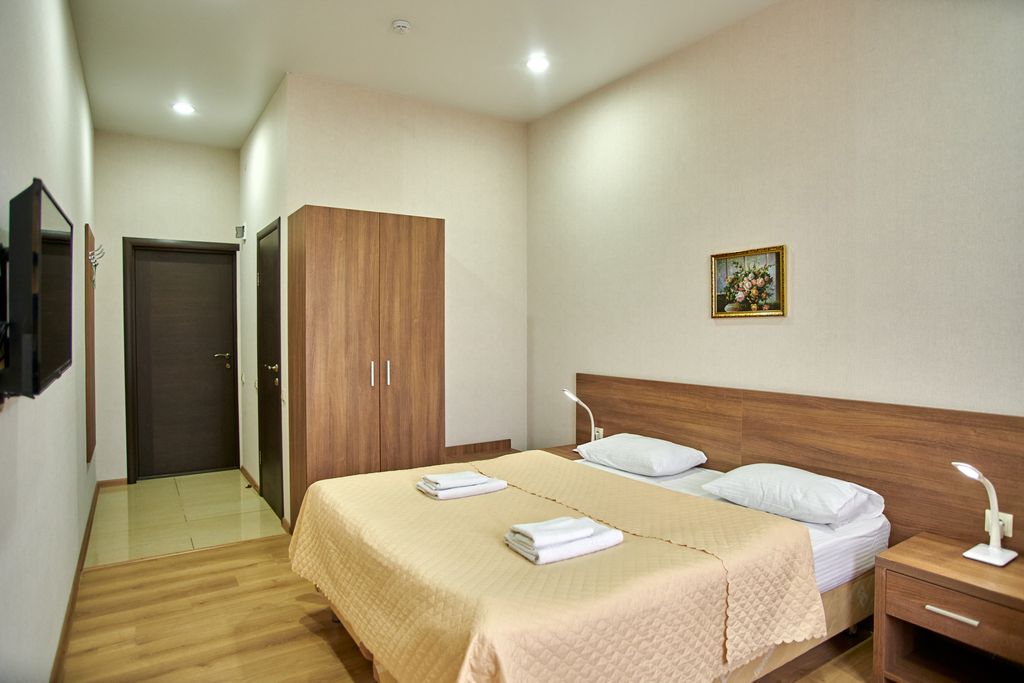 Об отеле Отель F&G - городской отель 3* в Адлере. До пляжа всего 150м. В здании есть лифт. На этажах - кулеры с водой, утюг и гладильная доска. Питание в отеле не предоставляется, но в здании есть кафе и продуктовый магазин. До дельфинария - 3км. До океанариума - 3км. До аэропорта - 3 км. До ж/д вокзала - 500м Нашим гостям нравится близость вокзала, ведь электрички - лучший способ быстро, легко и без пробок добраться до достопримечательностей и интересных мест вокруг Сочи. Бесплатный wi-fi. Возможен заказ трансфера до аэропорта.