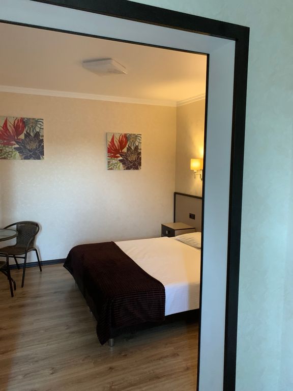 Отель расположен в Крыму, г. Саки, база отдыха «Прибой», ул. 7-й Сектор, д. 17, в 100 м от моря. Это тихое и несколько удаленное место от ночного клуба и ресторанов, что обеспечит комфортный отдых. Имеется двух комнатный номер класса люкс с двумя балконами и обворожительным видом на море. В номере люкс: санузел, душ, 2 ЖК телевизора, кондиционеры, утюг с гладильной доской, мини кухня: микроволновая печь, мультиварка, электро чайник, посуда. Круглосуточно горячая и холодная вода. В номере есть бесплатный WiFi. В наличии так же имеются трехместные номера класса комфорт 22 м2, двухместные номера улучшенные и стандартные 17м2. В номерах кровати, шкаф, стол, стулья, чайник и чашки. Холодильник, тв, сан узел, душ (горячая и холодная вода круглосуточно). Все номера оснащены кондиционерами. Стойка регистрации работает круглосуточно!