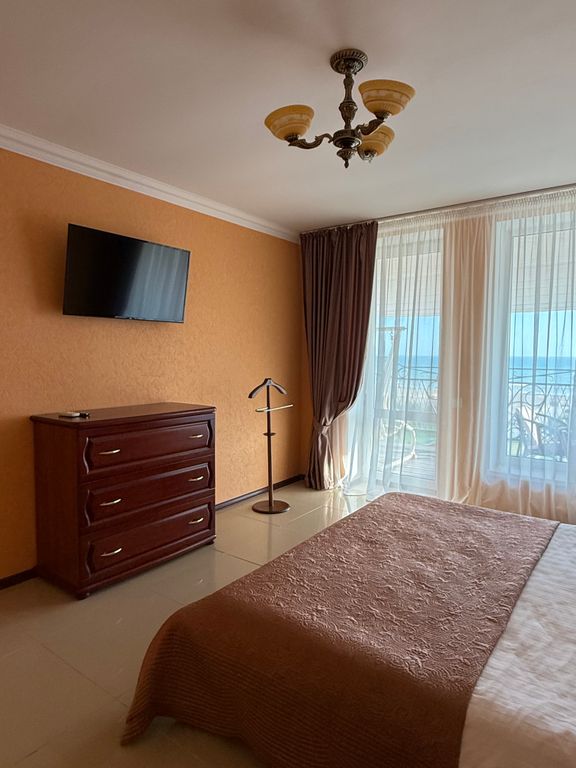 Отель расположен в Крыму, г. Саки, база отдыха «Прибой», ул. 7-й Сектор, д. 17, в 100 м от моря. Это тихое и несколько удаленное место от ночного клуба и ресторанов, что обеспечит комфортный отдых. Имеется двух комнатный номер класса люкс с двумя балконами и обворожительным видом на море. В номере люкс: санузел, душ, 2 ЖК телевизора, кондиционеры, утюг с гладильной доской, мини кухня: микроволновая печь, мультиварка, электро чайник, посуда. Круглосуточно горячая и холодная вода. В номере есть бесплатный WiFi. В наличии так же имеются трехместные номера класса комфорт 22 м2, двухместные номера улучшенные и стандартные 17м2. В номерах кровати, шкаф, стол, стулья, чайник и чашки. Холодильник, тв, сан узел, душ (горячая и холодная вода круглосуточно). Все номера оснащены кондиционерами. Стойка регистрации работает круглосуточно!