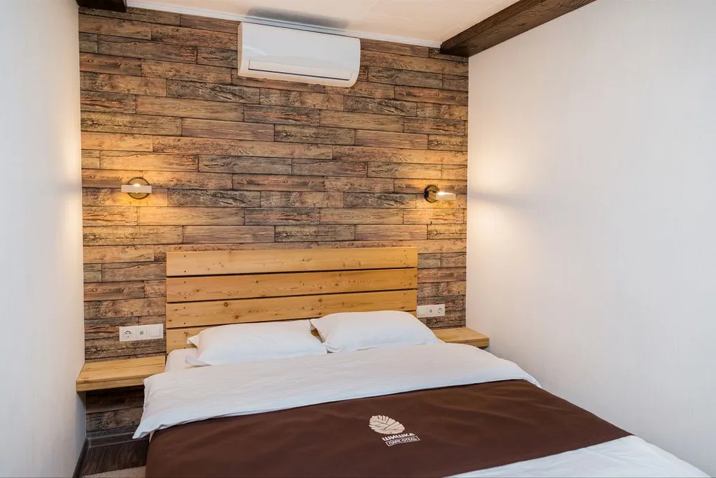 Двухкомнатный дом с панорамным видом на реку Катунь, спальная комната, гостиная, ванная комната, открытая терраса, беседка с мангальной зоной рядом с домом 30 кв.м (2 основных + 2 дополнительных места) Дополнительные места оплачиваются отдельно. Стоимость одного дополнительного места — 1500 руб/сутки. Двух — 2500 руб/сутки. Дети до 6 лет проживают бесплатно. Размещение с животными не допускается Двуспальная кровать, диван (раскладывается на два полноценных места), теплый пол, телевизор, гардеробный шкаф-купе, кондиционер, сейф, кухонный гарнитур, микроволновая печь, мини - холодильник, чайник, чайный набор, комплект посуды на четверых гостей, полотенца, тапочки, фен