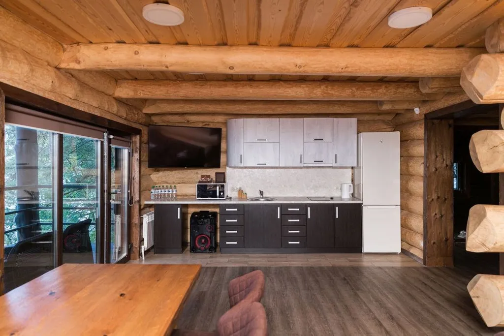 На первом этаже расположены: сауна, просторная гостиная с кухонной зоной, ванная комната, открытая терраса. На втором этаже расположены: четыре спальных комнаты, ванная комната. Рядом находится беседка с мангальной зоной и индивидуальная парковка. (8 основных + 2 дополнительных места) Дополнительные места оплачиваются отдельно. Стоимость одного дополнительного места — 1500 руб/сутки. Двух — 2500 руб/сутки. Дети до 6 лет проживают бесплатно. Размещение с животными не допускается Три двуспальные кровати, диван (раскладывается на два полноценных места), теплый пол, два телевизора, гардеробный шкаф-купе, холодильник, варочная поверхность, чайник, чайный набор, комплект посуды на десять гостей,полотенца, тапочки, фен.