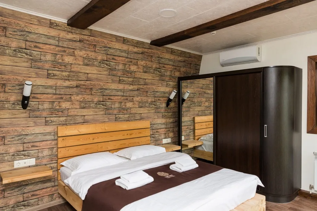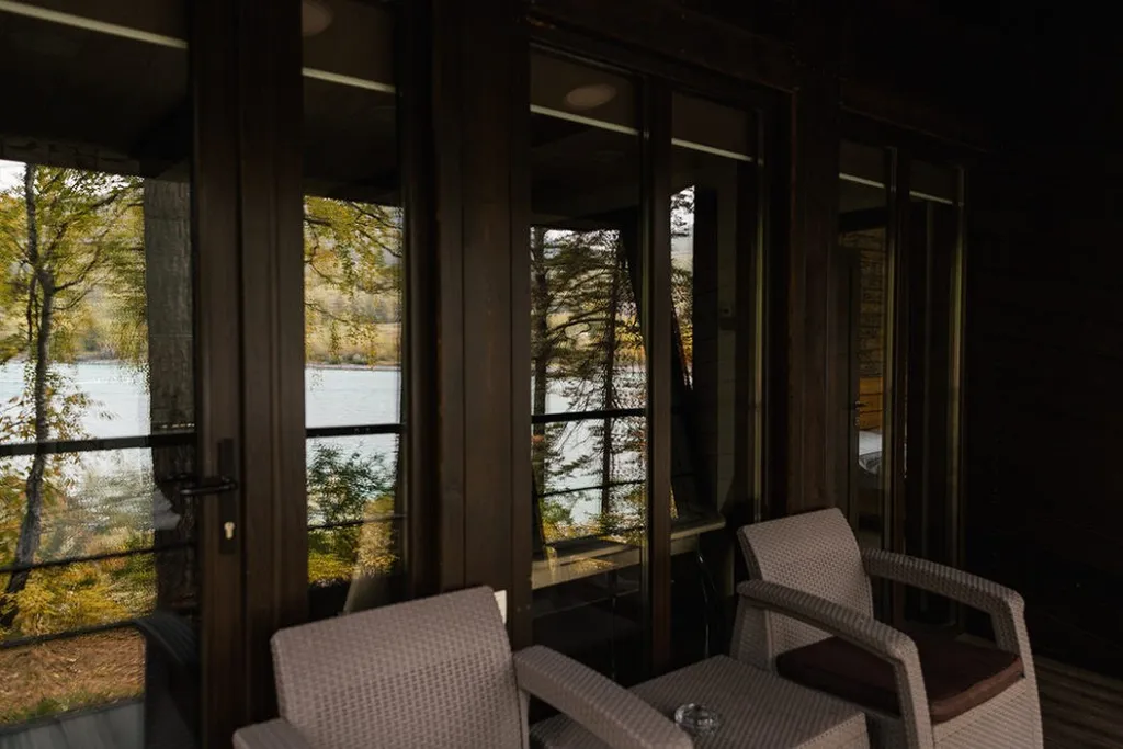 Двухкомнатный дом с панорамным видом на реку Катунь, спальная комната, гостиная, ванная комната, гардеробная, открытая терраса, беседка с мангальной зоной рядом с домом 40 кв.м (2 основных + 2 дополнительных места) Дополнительные места оплачиваются отдельно. Стоимость одного дополнительного места — 1500 руб/сутки. Двух — 2500 руб/сутки. Дети до 6 лет проживают бесплатно. Размещение с животными не допускается Двуспальная кровать, диван (раскладывается на два полноценных места), телевизор, кондиционер, сейф, кухонный гарнитур, микроволновая печь, мини - холодильник, чайник, чайный набор, комплект посуды на четверых гостей, полотенца, тапочки, фен