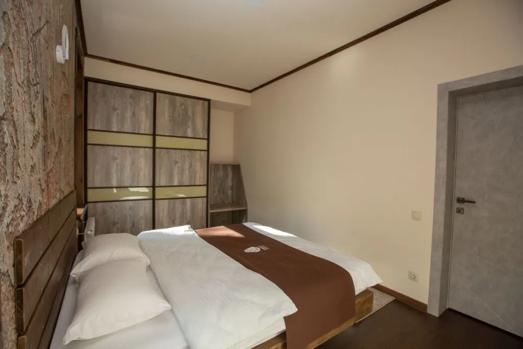 Трехкомнатный дом с панорамным видом на реку Катунь, две спальных комнаты, большая гостиная с кухонной зоной, 2 санузла (один санузел совмещен с сауной), беседка с мангальной зоной рядом с домом 100 кв.м. (4 основных + 2 дополнительных места) Дополнительные места оплачиваются отдельно. Стоимость одного дополнительного места — 2000 руб/сутки. Двух — 4000 руб/сутки. Дети до 6 лет проживают бесплатно. Размещение с животными не допускается Две двуспальные кровати, большой диван (раскладывается на два полноценных места), тёплый пол, место для хранения горнолыжного инвентаря, телевизор, кондиционер, сейф, кухонный гарнитур, варочная поверхность, микроволновая печь, большой холодильник, посудомоечная машина, чайник, чайный набор, комплект посуды на шесть гостей, полотенца, халаты, тапочки, фен.
