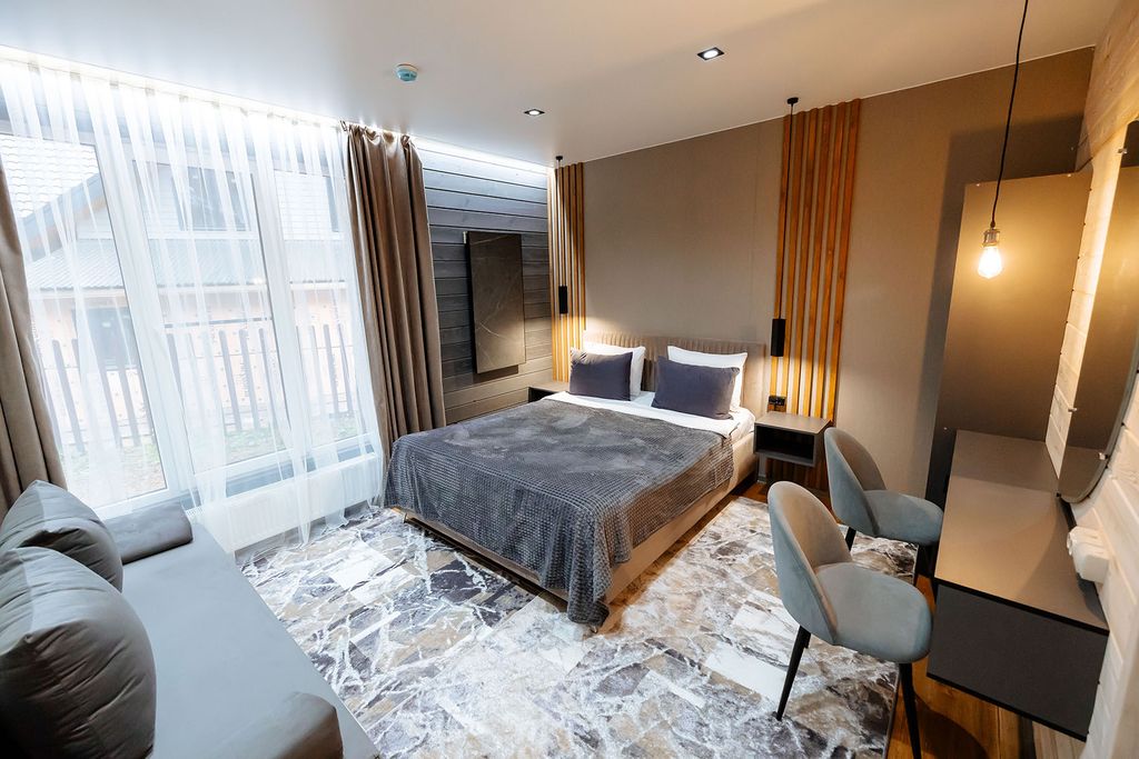Расположенный в горной местности и окруженный хвойным лесом, комплекс отелей Green Park & Усадьба Архыз предлагает идеальное уединение для тех, кто хочет отдохнуть на лоне природы. Гостей ждут комфортабельные номера и отдельные домики, оснащенные всеми удобствами: удобная кровать с качественным постельным бельём, собственная ванная комната, мини-шкаф, телевизор с кабельными каналами, бесплатным Wi-Fi на всей территории, мини-холодильник, чайник и набором для приготовления чая и кофе. Предоставляются тапочки, халаты, полотенца и косметические принадлежности для комфорта. На территории можно насладиться 3-мя теплыми подогреваемыми бассейнами, расслабляющей баней и чугунным чаном. Для гурманов работает ресторан с разнообразием европейских блюд и нотками местной кавказской кухни. Отель идеально расположен для активного отдыха: всего в 12 минутах езды находится ферма альпак, а канатная дорога — в 7 км. Гости могут легко добраться от ж/д вокзала Черкесска (119 км) или аэропорта Мине