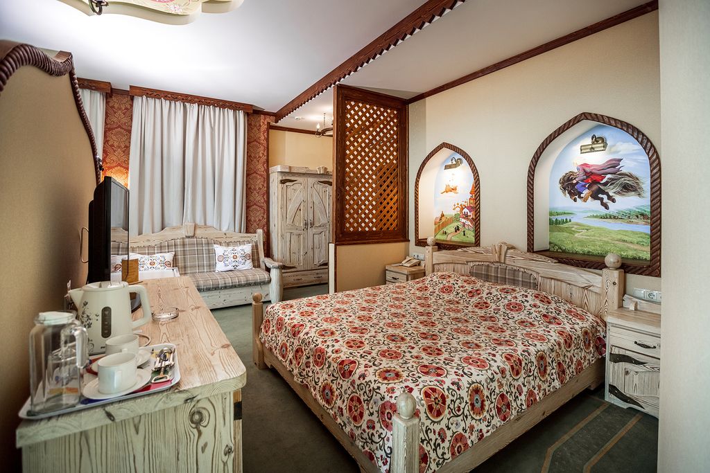 Отель «жар-птица» имеет уникальный дизайн в русском сказочном стиле. Уютные и просторные номера понравятся вам. Такого отеля вы ещё не встречали. В нём всё сделано из экологически чистых, полезных для дыхания и здорового сна материалов. Интерьер номеров представлен в стиле русской народной сказки. Все категории оснащены современной мебелью и техникой, современные ванные комнаты укомплектованы всем необходимым. Тёплый приём ожидает наших гостей, каждый сможет попробовать настоящую русскую кухню, для детей есть игровой уголок. Имеется зона для отдыха на улице. Так же во дворе вас ждёт сказочная бричка «жар-птица».