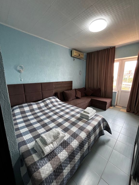 Отель Акуна Матата располагается в городе-курорте Саки на побережье Черного моря в 140 метрах от уреза воды. Корпуса отеля находятся на территории базы отдыха “Уют” вдали от дорог с интенсивным движением и источников шума. Номера в отеле Акуна Матата располагаются в двух четырехэтажных корпусах. На каждом этаже располагается от двух до четырёх номеров. Все номера выше первого этажа имеют балконы. Окна жилых комнат выходят на море и лечебное озеро. Стены окрашены в спокойные цвета, а высота потолков 2,9 метров. Все номера полностью меблированы современной мебелью и обеспечены электрооборудованием. Учитывая жаркое летнее солнце во всех комнатах установлены кондиционеры.