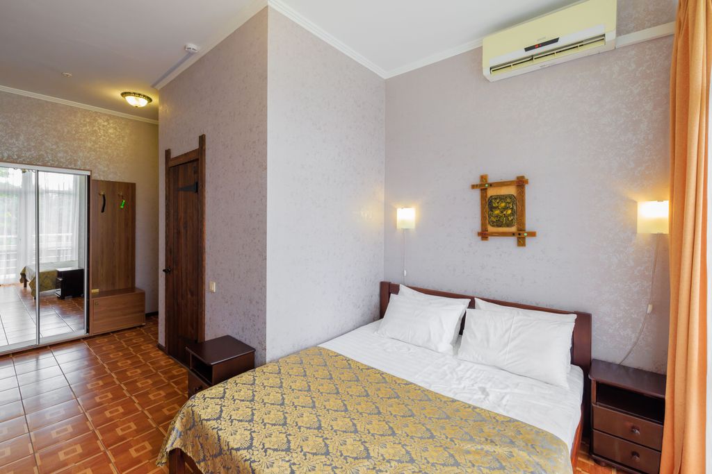 Откройте для себя парк-отель "Прага" – ваш оазис спокойствия в 150 метрах от моря! Мы находимся в живописной парковой зоне, всего в нескольких минутах ходьбы от оживленной центральной набережной и остановок общественного транспорта. Погрузитесь в атмосферу изысканного чешского гостеприимства! Интерьер отеля выполнен в духе лучших чешских домов, а номера обставлены элегантной мебелью из натурального дерева, сочетающей современный комфорт с традиционным шармом. Мы позаботились о каждой детали вашего пребывания: в номерах вас ждут ванная комната, кондиционер, холодильник, телевизор, бесплатный Wi-Fi, телефон, одноразовые тапочки и свежее сезонное постельное белье. Насладитесь отдыхом у бассейна с шезлонгами, расположенного прямо на территории отеля. Ваша безопасность – наш приоритет: круглосуточная охрана и видеонаблюдение гарантируют безмятежный отдых.