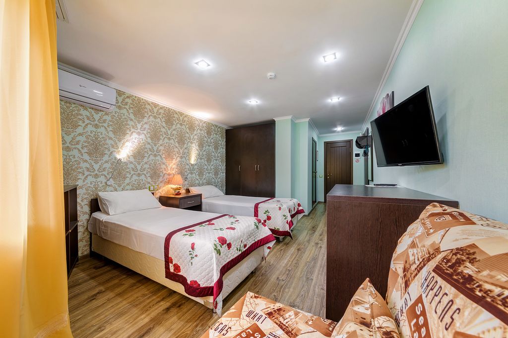 Отель «Людмила» расположен в спокойном районе Геленджика «Тонкий мыс», удаленном от городской суеты и грохочущей музыки. На территории отеля летняя терраса с искусственным водопадом, заплетенная виноградной лозой, в тени которой вы сможете отдохнуть и насладиться чашечкой ароматного кофе. Вас ждут чистые, современные номера с новой мебелью и сантехникой. Вкусные сытные завтраки и выгодные обеды для гостей отеля в соседнем уютном кафе "Ветерок".
