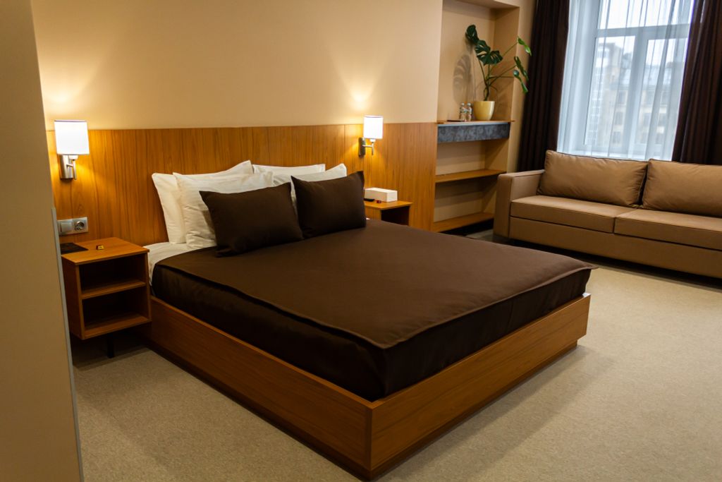 «Центр Отель» удобно расположен в шаговой доступности от Московского вокзала и в 100 метрах от станции метро «площадь Восстания». Недалёко от отеля расположены крупные торговые центры: Галерея и Стокманн. Бронируя номер в «центр отель», вы одновременно окажетесь и в самом центре Петербурга, и вдали от шума повседневной жизни большого города. Как такое возможно? Спокойная атмосфера вам обеспечена благодаря окнам номеров, которые выходят на тихую пешеходную улицу. Каждый номер в нашей гостинице оснащен всем необходимым для того, чтобы отдых стал идеальным. Вы действительно почувствуете себя здесь как дома. В номере вас ждет полный набор косметических принадлежностей: мыло; шампунь; гель для душа; кондиционер для волос; зубные наборы; косметические наборы. Кроме стандартного набора, мы подготовили для посетителей тапочки и халаты. Качество текстиля халатов подарит вам комфортные и уютные ощущения. Также в номере есть: удобная кровать с ортопедическим матрасом; мини-бар; Smart телевиз