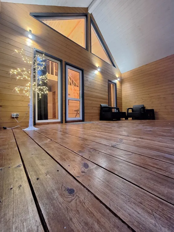 Мы очень старались и строили домик, чтобы люди могли выбраться из городской суеты и провести время в живописном месте Нижегородской области около Горьковского моря! Стильный дом с панорамными окнами, большой террасой, сосновым лесом во дворе, вместимостью на 6 человек! (Возможно размещение на 8 человек по предварительной договорённости.) Мы наполнили дом всем необходимым для комфортного и классного отдыха: - 2 изолированных спальни (на 4 человека); - 1 мансардная спальня (на 2 человека); - кухня-гостиная с обеденной зоной, TV и раскладным диваном; - оборудованная кухня с современной техникой: холодильник, индукционная плита, микроволновая печь, электрочайник, посуда и столовые приборы; - санузел с душевой кабиной; - полотенца, постельное бельё, стиральная машина, фен, гладильная доска, утюг, кондиционер, туалетные принадлежности; - тёплый пол по всему дому; - Wi-Fi, Smart TV; - сауна; - настольные игры; - книги. На улице: открытая терраса с мебелью, мангал, купель фурако. Сауна — 3