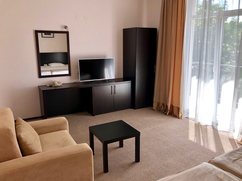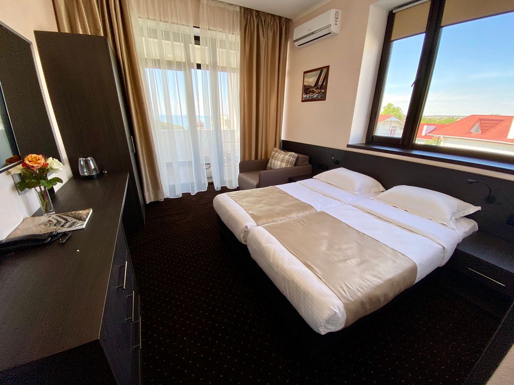 Современный отель расположен рядом с песчаным пляжем «Учкуевка» и большим парком «Учкуевка». Все номера оснащены кондиционерами, индивидуальными сейфами. Есть номера с кухнями. Из половины номеров великолепный вид на море или бассейн. Есть спа-зона на открытом воздухе с инфракрасной сауной и теплой джакузи. Вся территория утопает в зелени кипарисов, лиственных деревьев, инжира и гранатовых кустов.