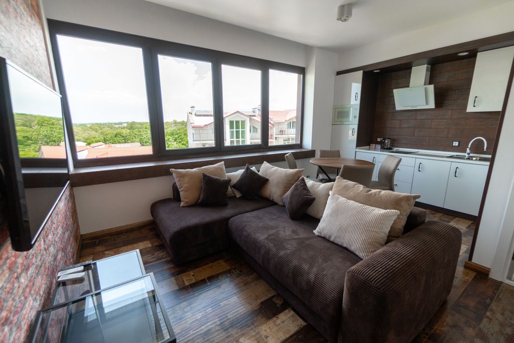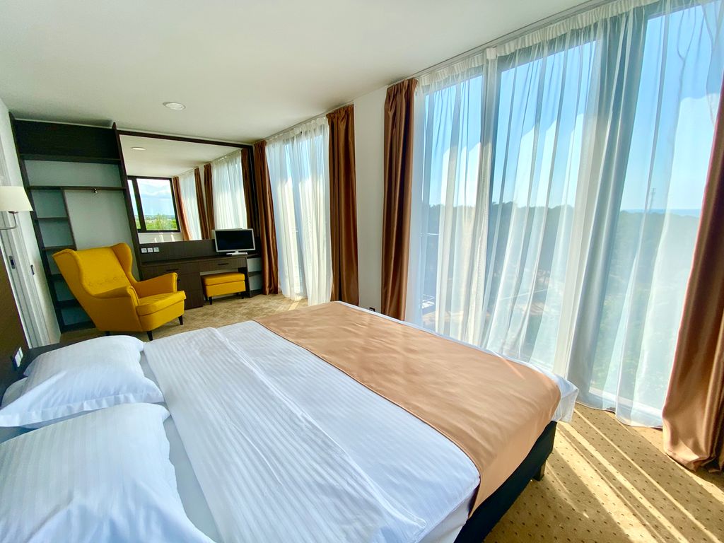Современный отель расположен рядом с песчаным пляжем «Учкуевка» и большим парком «Учкуевка». Все номера оснащены кондиционерами, индивидуальными сейфами. Есть номера с кухнями. Из половины номеров великолепный вид на море или бассейн. Есть спа-зона на открытом воздухе с инфракрасной сауной и теплой джакузи. Вся территория утопает в зелени кипарисов, лиственных деревьев, инжира и гранатовых кустов.