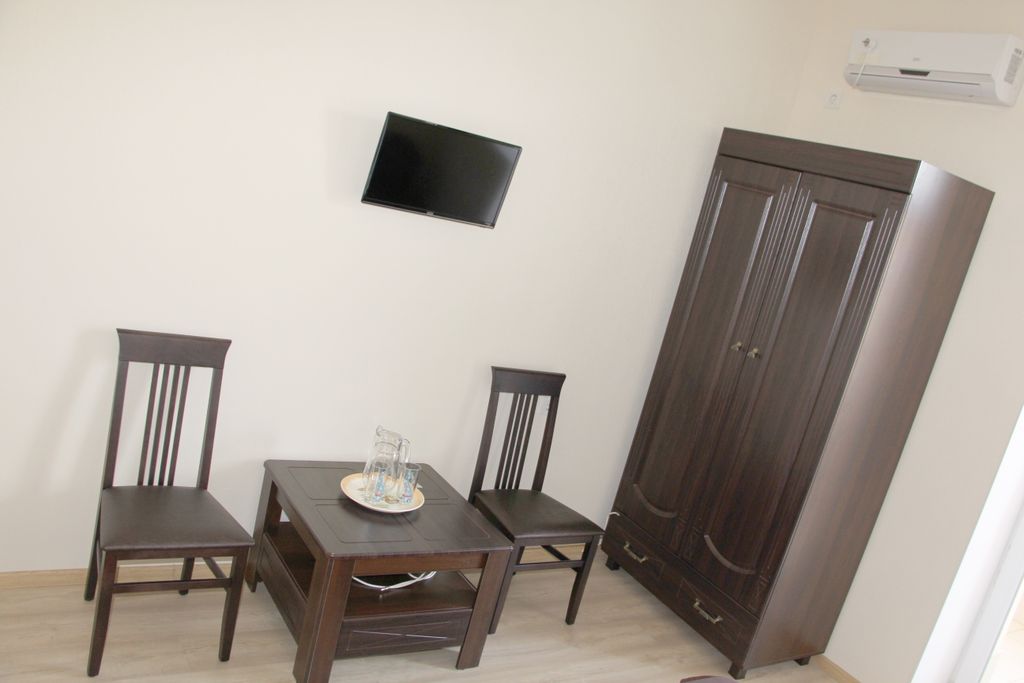 Пансионат Астра-центр находится в Евпатории, известном крымском городе-курорте. Он удобно расположен в курортной зоне города недалеко от моря (450 м). Мы предлагаем вам комфортабельные номера со всеми удобствами, оснащенные системами кондиционирования, телевизорами (цифровые-кабельные каналы), холодильниками, имеется Wi-Fi-сеть (интернет). Автономная котельная обеспечивает круглосуточную подачу горячей и холодной воды. Номера первого и второго этажей включают балконы полутораметровой ширины.За дополнительную плату можно заказать завтрак, обед и ужин. Территория пансионата огорожена и благоустроена. Там находится автостоянка, детская площадка, столовая, библиотека. У представителя туристической фирмы можно заказать экскурсии по городу и по Крыму, дегустацию крымских вин. Рядом с пансионатом расположена сеть магазинов (продовольственные и сувенирные), аптека, городской парк им. Франко. Парк Фрунзе, дельфинарий, аквапарк в пешеходной доступности.