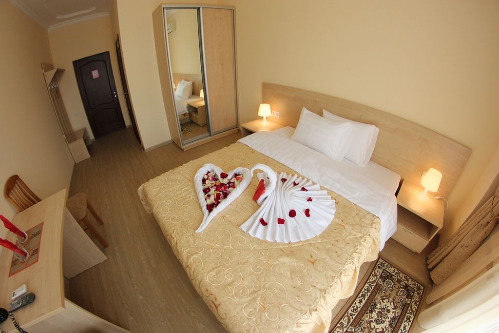 Отель Plaza находится в тихом, уютном, экологически чистом районе города с прекрасно развитой инфраструктурой: продуктовые магазины, кафе, столовые, автозаправочные станции, аптеки, автобусные остановки. До пляжа 8-10 минут ходьбы. Основное преимущество расположения то, что отель Plaza находится в пяти минутах ходьбы от самого большого в России аквапарка "Золотая бухта"