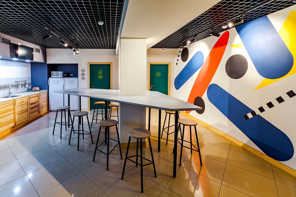 Хостел «Друзья на Сенной» занимает 3 этажа одного из исторических зданий в центре Санкт-Петербурга. Вход в хостел расположен на набережной канала Грибоедова. Для своего проживания гости «Друзей на Сенной» могут выбрать место в многоместных комнатах, рассчитанных на 6-ти, 8-ми или 10-ти местное размещение или один из отдельных номеров с двуспальными кроватями с видом на канал Грибоедова. Общая вместимость хостела - 100 человек. В каждой из двух просторных гостиных хостела есть кухня, большой обеденный стол и настольный футбол. Изюминкой оформления «Друзей на Сенной» являются абстрактные картины, в геометрии и ярких цветах которых каждый, наверняка, увидит что-то свое.