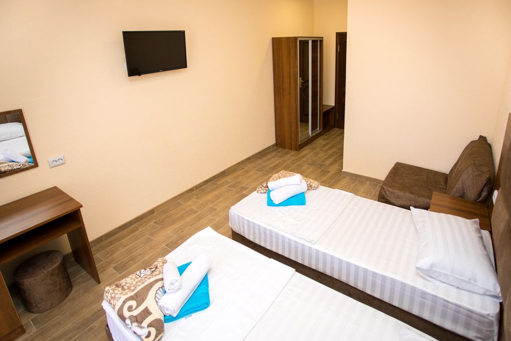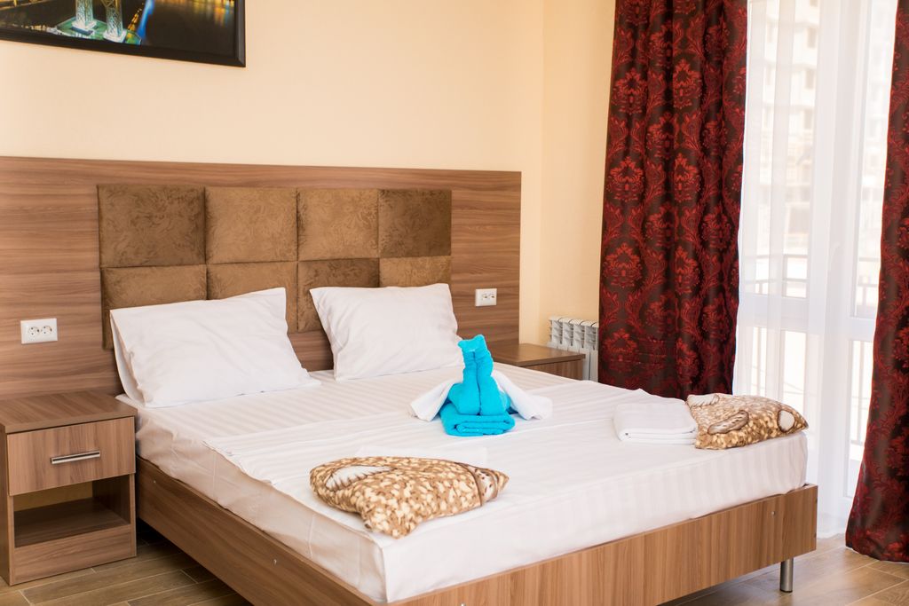 Мы рады предложить Вам отель «Гранд Агатия» и будем счастливы видеть Вас в качестве нашего гостя и предлагаем Вам ощутить гостеприимство в его лучшем проявлении. «Grand Аgatia» - это современная отель, построенный специально для комфортного отдыха на Пионерском проспекте среди Черноморских здравниц и детских лагерей, который славится чистотой, тишиной и близостью к морю. Сам отель построен 2018 году и представляет собой трехэтажное строение с комфортабельными номерами. Уютные номера оснащены всем необходимым для комфортного пребывания в отеле. Во всех номерах качественная мебель и современная техника и сантехника. Каждый номер имеет балкон, сплит-систему, холодильник, жидкокристаллический телевизор с цифровым ТВ, беспроводной интернет, ванную комнату с феном. Для безопасности наших гостей, территория отеля находится под видеонаблюдением. Для автолюбителей имеется автостоянка, как подземная, так и на территории самого отеля. На жилой ухоженной территории отеля можно искупаться