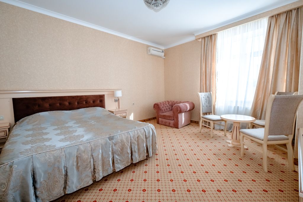 Современный гостиничный комплекс "Триумф" расположен вблизи центра города. Удобная транспортная развязка позволят вам с лёгкостью добраться до любого уголка Краснодара. В непосредственной близости от отеля находится главная улица с парковой и прогулочной зоной, многочисленные магазины, кафе, ночные клубы, торговый центр и кинотеатр. Отель предлагает размещение в комфортабельных номерах различных категорий, оснащённых всеми необходимыми условиями для отдыха и работы. В каждом номере имеется плазменный телевизор с кабельным телевидением, телефон, кондиционер, холодильник.Дети до 3 лет бесплатно.С животными не принимаем. К услугам гостей spa-зона, бассейны с подогревом, сауна, тренажерный зал, ресторан и велопрокат. В нашем ресторане регулярно проводятся выступления с живой музыкой. На территории гостиницы имеется бесплатная парковка.