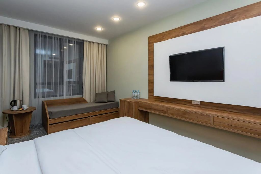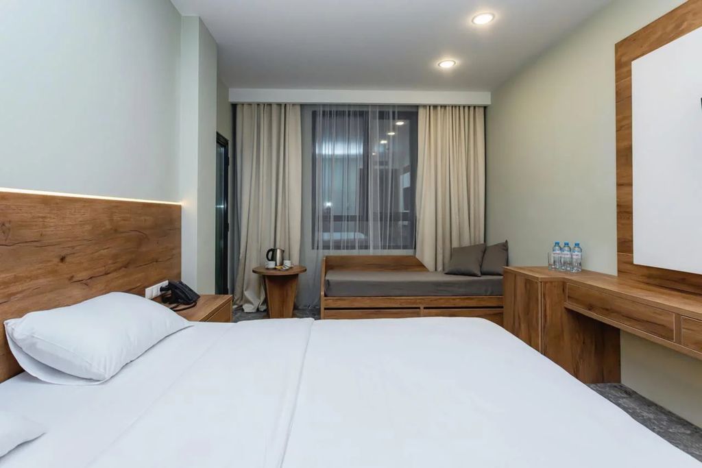 Современный гостиничный комплекс "Триумф" расположен вблизи центра города. Удобная транспортная развязка позволят вам с лёгкостью добраться до любого уголка Краснодара. В непосредственной близости от отеля находится главная улица с парковой и прогулочной зоной, многочисленные магазины, кафе, ночные клубы, торговый центр и кинотеатр. Отель предлагает размещение в комфортабельных номерах различных категорий, оснащённых всеми необходимыми условиями для отдыха и работы. В каждом номере имеется плазменный телевизор с кабельным телевидением, телефон, кондиционер, холодильник.Дети до 3 лет бесплатно.С животными не принимаем. К услугам гостей spa-зона, бассейны с подогревом, сауна, тренажерный зал, ресторан и велопрокат. В нашем ресторане регулярно проводятся выступления с живой музыкой. На территории гостиницы имеется бесплатная парковка.
