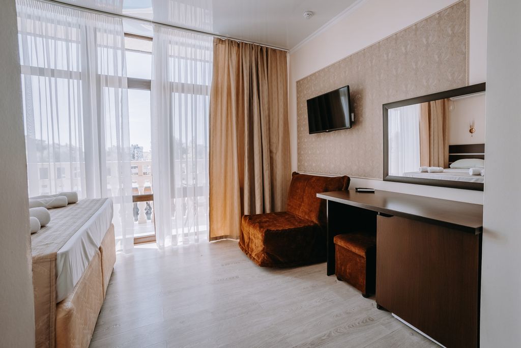 Отель горгиппия - это современный семейный отель, находящийся на второй береговой линии (300 метров до моря). Горгиппия - это не просто отель, это комплекс коттеджей расположенных на благоустроенной зелёной территории. Для гостей предлагаются размещения в двух-, трёх-, четырёх- пятиместных номерах категории комфорт. Каждый номер оснащен: сплит-системой, телевизором, холодильником, посудой, гигиеническим набором. Отель расположен в самом центре курортного поселка витязево. Рядом находится вся необходимая инфраструктура для вашего полноценного отдыха: парки аттракционов, кафе, рестораны, столовые, аптеки, развлечения для детей и многое другое. Также напротив отеля знаменитый аквапарк "олимпия" В 2022 году отель "горгиппия" получил свидетельство о присвоении категории «три звезды». В услуги отеля входит: Парковка Каждодневная детская и взрослая анимация Бассейн 150 м кв Детская площадка Отдыхайте с комфортом для себя и своей семьи. Всегда рады и ждем вас!