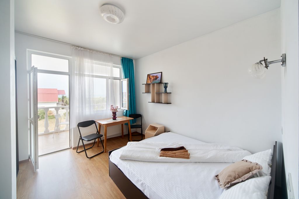Приглашаем вас отдохнуть на западном побережье крыма в п. Песчаное. Мини-отель расположен в поселке песчаное в 200 метрах от береговой линии в уединенной охраняемой зоне. Трёхэтажное здание мини-отеля имеет комфортабельные номера, столовую и беседки для отдыха. На всей территории отеля имеется высокоскоростной интернет. Современные комфортабельные двух- и трёхместные номера типа "стандарт", семейные двухкомнатные номера для размещения типа "полулюкс" и номера "комфорт" с мансардной крышей и видом на море. Мы располагаемся в 200 метрах от песчано-галечного пляжа, оборудованного навесами, раздевалками, шезлонгами. На набережной располагаются кафе и рестораны. Вход на пляж бесплатный. Дорога до пляжа ровная, благоустроенная. В 100 метрах от отеля находится круглогодичный спа-комплекс, где предлагаются спа процедуры, посещение соляной пещеры, бассейн с подогревом, ресторан. Расположение до г. Бахчисарай - 25 км, до г. Севастополь - 35 км, до г. Симферополь