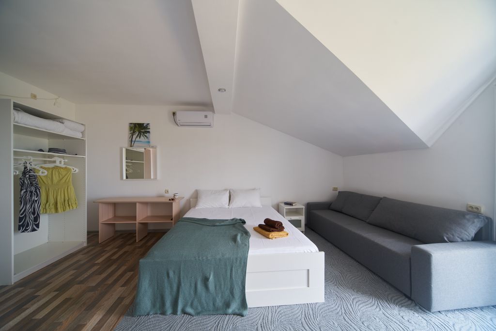 Приглашаем вас отдохнуть на западном побережье крыма в п. Песчаное. Мини-отель расположен в поселке песчаное в 200 метрах от береговой линии в уединенной охраняемой зоне. Трёхэтажное здание мини-отеля имеет комфортабельные номера, столовую и беседки для отдыха. На всей территории отеля имеется высокоскоростной интернет. Современные комфортабельные двух- и трёхместные номера типа "стандарт", семейные двухкомнатные номера для размещения типа "полулюкс" и номера "комфорт" с мансардной крышей и видом на море. Мы располагаемся в 200 метрах от песчано-галечного пляжа, оборудованного навесами, раздевалками, шезлонгами. На набережной располагаются кафе и рестораны. Вход на пляж бесплатный. Дорога до пляжа ровная, благоустроенная. В 100 метрах от отеля находится круглогодичный спа-комплекс, где предлагаются спа процедуры, посещение соляной пещеры, бассейн с подогревом, ресторан. Расположение до г. Бахчисарай - 25 км, до г. Севастополь - 35 км, до г. Симферополь