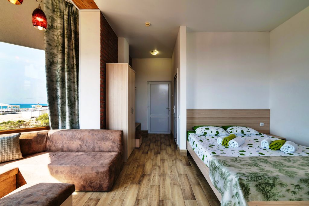 Хотите провести свой отдых в Анапе с комфортом? Гостиничный комплекс «Фантазия» (категория - Три звезды) — это новые здания, построенные из современных и экологически чистых материалов. Для проживания мы предлагаем Вам номера с балконом, террасами и незабываемым видом на парковую зону и морскую гладь. Благоустроенные деревянные домики в парке. Для гостей отеля предусмотрена бесплатная парковка, зона отдыха с детской игровой площадкой, мангал, оборудованная кухня для самостоятельного приготовления пищи. А также мы готовы предложить вам комплексное питание или заказное меню в отдельном корпусе столовой, за дополнительную оплату. Территория комплекса круглосуточно находится под охраной и видеонаблюдением.