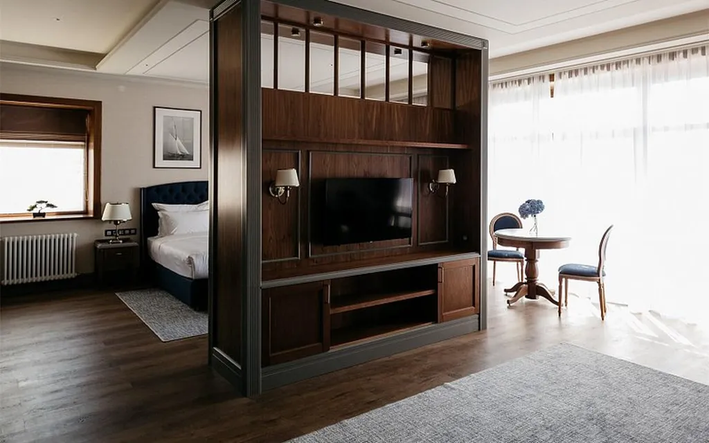 Номер категории «ВИП» предполагает размещение от 1 до 3 гостей.Площадь номера:65 кв.м.Номер состоит из двух зон: спальня, кабинет и зона отдыха с удобным большим диваном, который может быть трансформирован под дополнительное спальное место.Дети до 5 лет бесплатно.С питомцами можно. Парковка на территории.Завтрак включён. Для сохранения общей гармонии и пространства в номере установлена дизайнерская стенка со встроенным зеркальным телевизором.К Вашим услугам в номере:массажное кресло-качалка,капсульная кофемашина,телефон,сейф,мультизональная система кондиционирования,душевая кабина и ванная-чаша с премиальными наборами косметики для лучшего ухода и релаксации,фен,халаты,тапочки,двуспальная ортопедическая кровать.За качество сна отвечают блэкаут-шторы и два вида подушек.