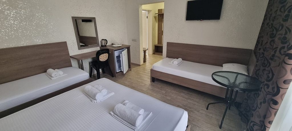 Новый гостевой дом 2018 года! Расположен в центре поселка витязево в 5-ти минутах ходьбы от пляжа и 2-х минутах от паралии! (20 метров), аквапарк, дельфинарий, парк аттракционов, столовые, кафе, до пляжа 200 метров распологает гостей в 2-х, 3-х и 4-х местных номерах.