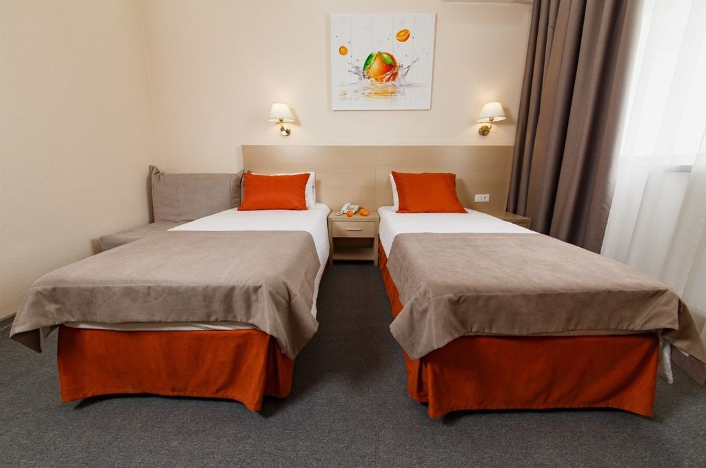 Отель «мандарин» в г. Анапа — современный комфортабельный отель 3 звезды, подходящий как для семейного отдыха, так и для делового и спортивного туризма, расположенный на пионерском проспекте, который славится чистотой, тишиной и близостью к морю. отель «мандарин» находится рядом с новым дельфинарием, океанариумом и пингвинарием, в дельфинарии осуществляется программа реабилитации детей с различными нарушениями развития при помощи уникального метода дельфинотерапии. В отеле за дополнительную плату доступно питание на выбор по системе «шведский стол» (выбирается при бронировании) — только завтрак (490 рублей/человек), полупансион (завтрак и ужин — 1050 рублей/человек), либо полный пансион (завтрак, обед, ужин — 1700 рублей/человек). Для детей предусмотрена детская комната при отеле и квалифицированные воспитатели-педагоги (дети до 4 лет под присмотром родителей), детская площадка и батут, детский бассейн (глубиной 90 см), анимационные программы, гипоаллергенное постельное бельё. За допол