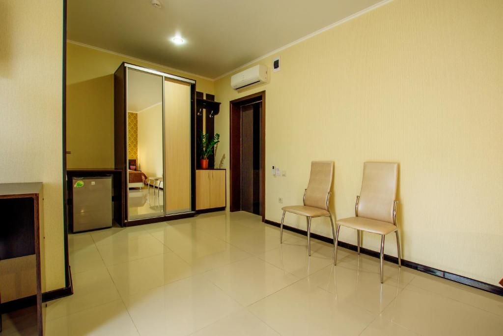 Отель предназначен для спокойных и уверенных в себе людей, которые предпочитают семейный отдых молодежному. Это подтверждается наличием в гостевом доме детской комнаты для игр. В отеле есть подогреваемый бассейн с гидромассажем, детской зоной и зоной отдыха. Также к вашим услугам на выбор платная охраняемая парковка или бесплатная, но с видеонаблюдением. При необходимости освежить вещи вам поможет прачечная и услуги по глажению одежды.