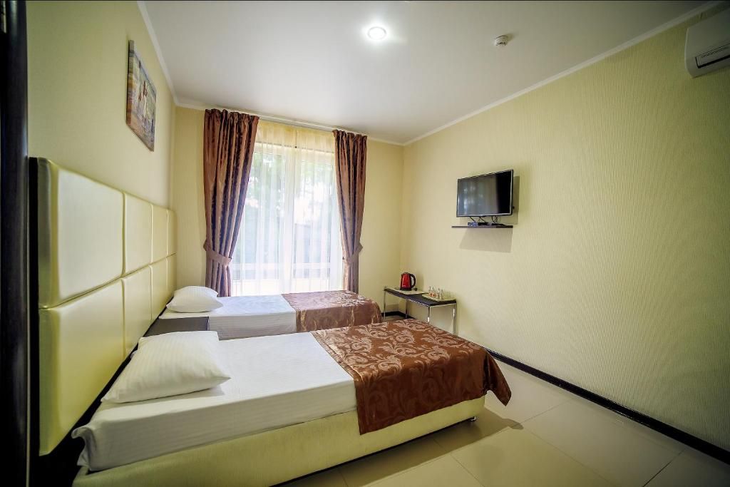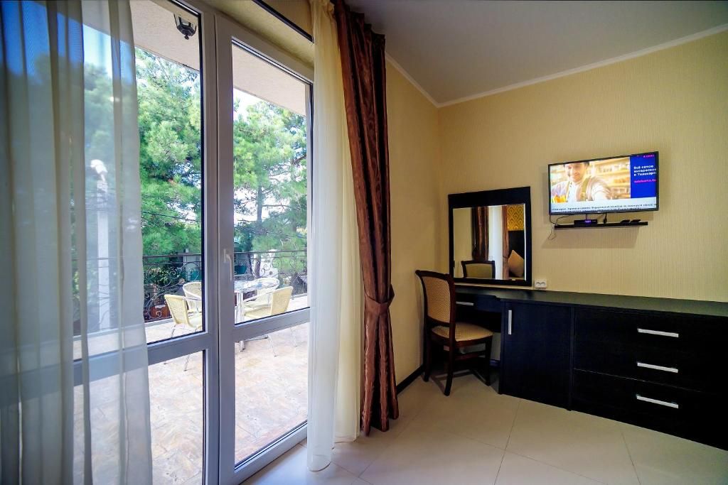 Отель предназначен для спокойных и уверенных в себе людей, которые предпочитают семейный отдых молодежному. Это подтверждается наличием в гостевом доме детской комнаты для игр. В отеле есть подогреваемый бассейн с гидромассажем, детской зоной и зоной отдыха. Также к вашим услугам на выбор платная охраняемая парковка или бесплатная, но с видеонаблюдением. При необходимости освежить вещи вам поможет прачечная и услуги по глажению одежды.