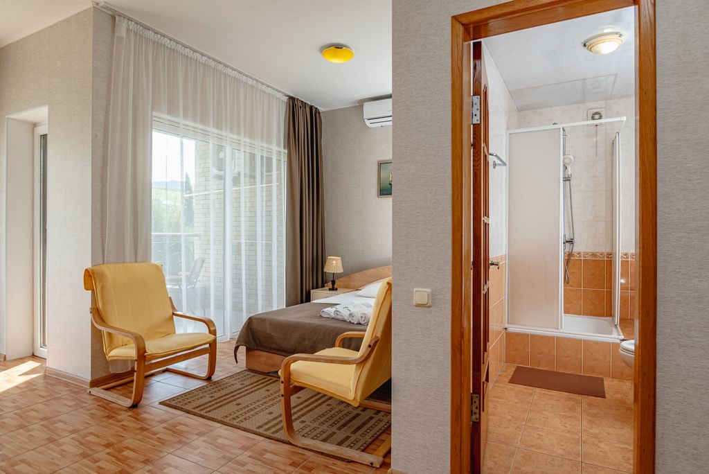 «Отель Медведь Resort» расположен в уютном уголке среди гор, в курортном поселке Коктебель. Для удобства наших гостей отель оборудован современным бассейном 200 кв. м. с морской водой и подогревом, большим спортивным комплексом с спортзалом, детской площадкой, гриль - баром, рестораном, уличным кинотеатром, СПА комплексом (5 видов бань и саун) просторной парковкой, большой зоной вокруг бассейна для загара. Отель располагает большим перечнем занятий и тренировок, где каждый гость может выбрать, то что ему по душе, от йоги до силовых тренировок, трекинговых походов, единоборств, фитнесса, стретчинга и многих других. Принимать солнечные ванны с освежающим коктейлем или отправится в настоящее приключение, выбор за Вами, обо всем остальном позаботится команда профессионалов отеля «Медведь Resort» В Вашем распоряжении: - Три корпуса с номерами категорий: стандарт, полу-люкс ,однокомнатный и двухкомнатный - Большой бассейн с морской водой 200 кв.м., шезлонгами, шале - Ресторан с большой л