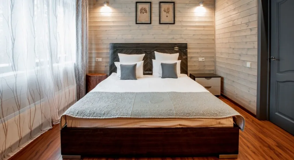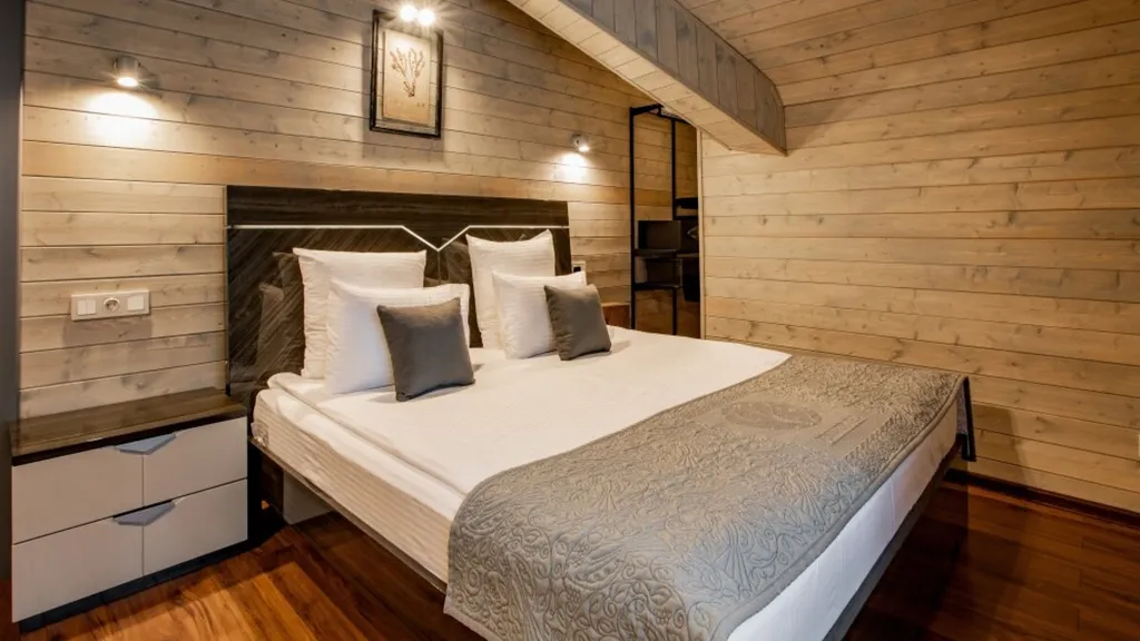 «Вилла» – это 2-этажный дуплекс с 4 спальнями, 2 душевыми кабинами, кухонной зоной, гостиной с камином. На территории отеля всего 4 коттеджа, каждый из которых рассчитан на 8 гостей. Также есть возможность установки двух дополнительных мест.