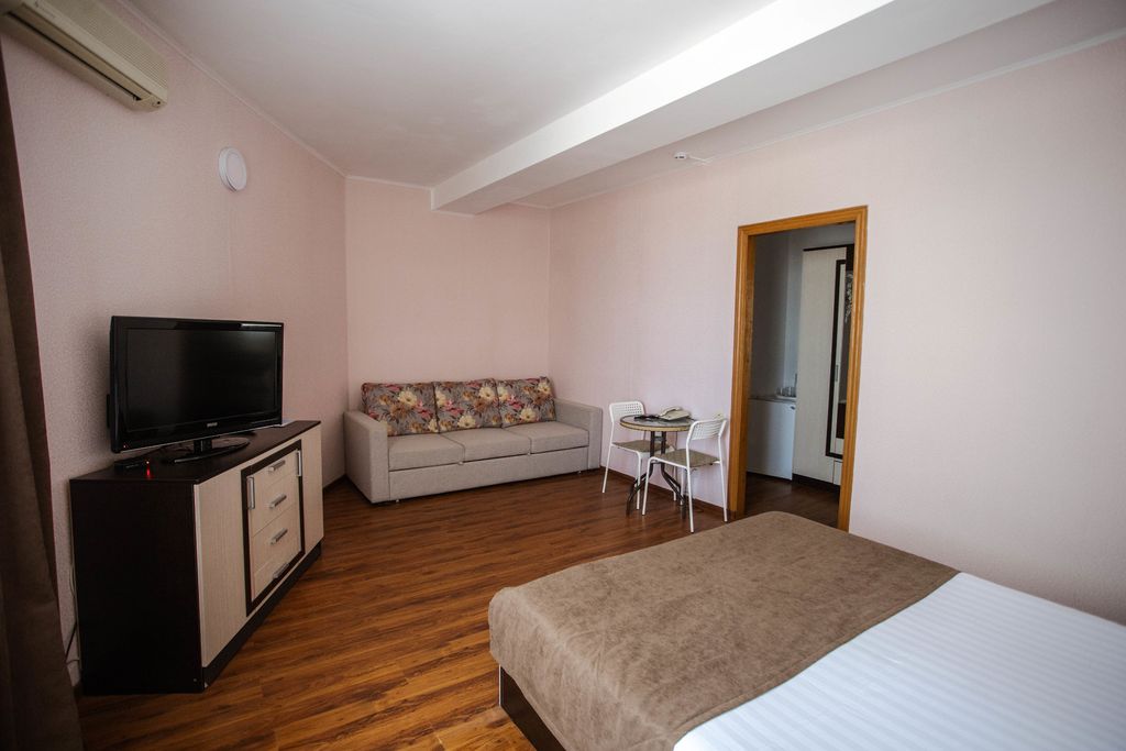 Оказавшись в центре курортной жизни, гости отеля «Фотини» (Анапа) могут интересно и весело провести долгожданный отдых.Инфраструктураотеля «Фотини» в Анапе: кафе в здании гостиницы; бар у моря; бассейн с отделением для детей; сауна; джакузи с гидромассажем; оборудованная площадка для принятия солнечных ванн (с шезлонгами, тентами и прочими необходимыми предметами удобств); массажный кабинет; парикмахерская. В отеле предусмотрено комплексное питание за дополнительную плату (500 рублей каждый приём пищи, либо 1500 рублей 3-х разовое комплексное питание). «Фотини» -отель с пляжем,на который открывается изумительный вид прямо из окон номеров, соответственно и идти до него всего несколько минут. Это Центральный пляж Анапы - чистый, хорошо оборудованный (лежаки, тенты, душевые кабины, туалеты) и со всевозможными развлечениями. В пяти минутах ходьбы от комплекса располагается автостоянка, охраняемая, платная (500 рублей/сутки).