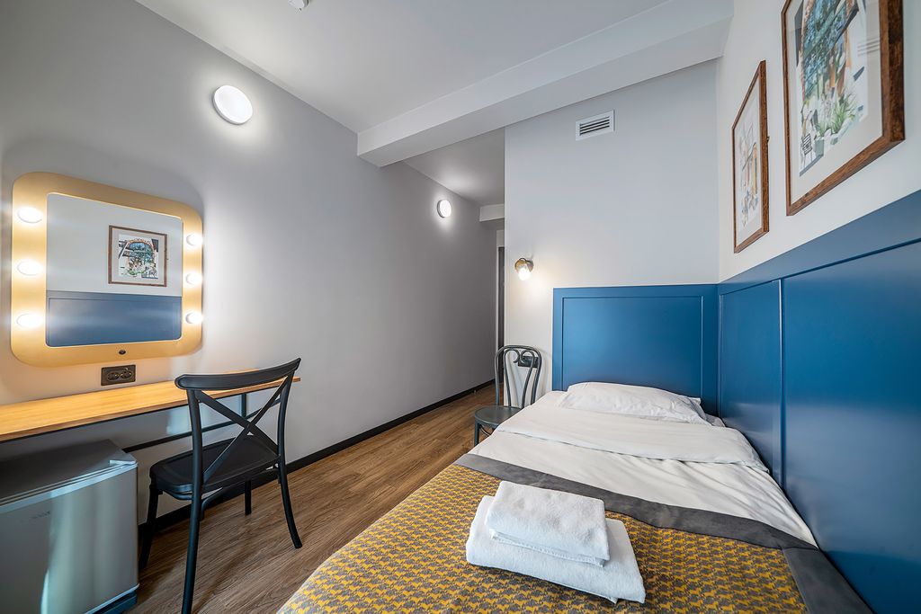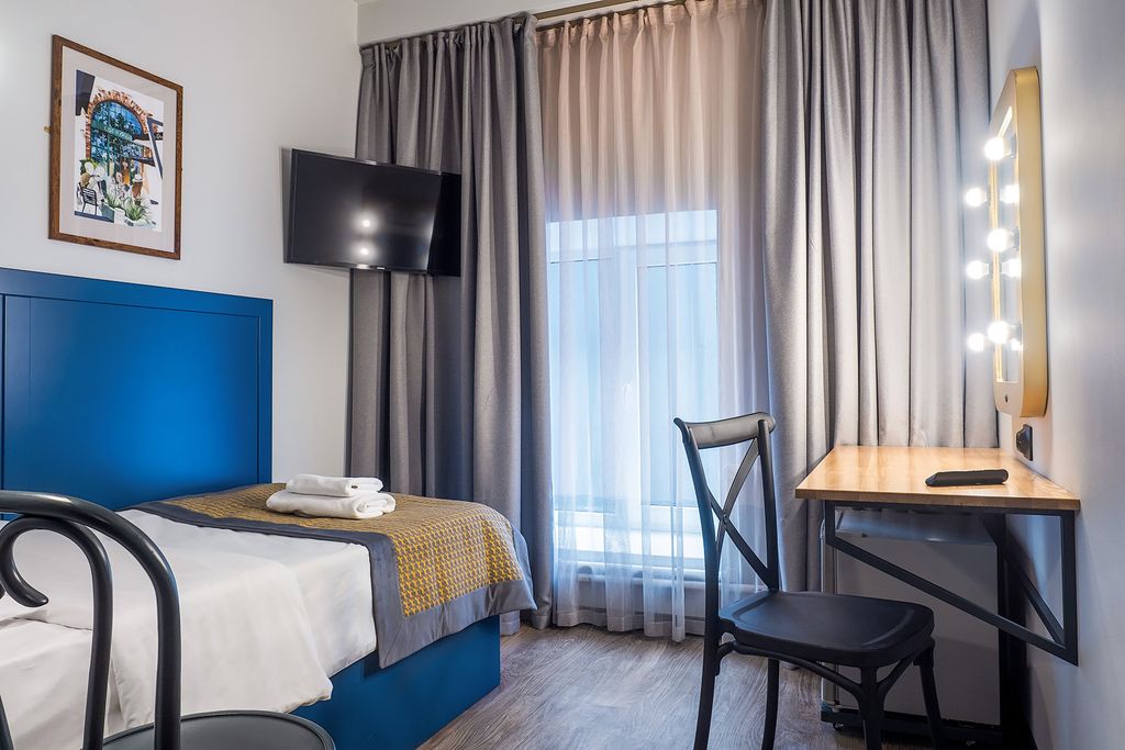 Отель «Друзья на Садовой» расположен в историческом центре Санкт-Петербурга, вблизи от станции метро Гостиный двор. Вход в отель находится в анфиладе арок торговых рядов Апраксина двора (со стороны улицы Ломоносова). Стойка администратора расположена сразу при входе в отель, а комнаты занимают со второго по пятый этаж здания, куда можно подняться на современном лифте. В отеле три категории номеров: одноместные, двухместные и студии с кухней. Все комнаты имеют собственные удобства и оснащены холодильником, телевизором с большим жк экраном. В студиях можно полноценно готовить на кухнях, оборудованных плитой, микроволновой печью, электрическим чайником. На третьем этаже есть общая гостиная с кухонным уголком, мягкой мебелью и большим обеденным столом. Дизайн отеля – это свежая вариация на тему классических гостиничных интерьеров: мебель из натуральных материалов, мягкие цвета и оригинальные графические работы на стенах. Внимание! В настоящее время на улице Ломоносова проводятся ремонтны